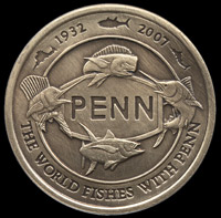 Para comemorar os seus 75 anos de história, a Penn, lança no mercado uma carretilha especial “edição de colecionador”. que traz em sua lateral o verso da moeda comemorativa.