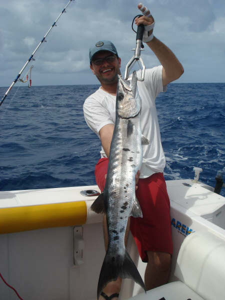Tive o prazer de conhecer o Capitão Júlio Maciel, proprietário da Lancha Ceminha, que organiza ótimas saídas para pesca em alto mar ( oceânica ) na Bahia.